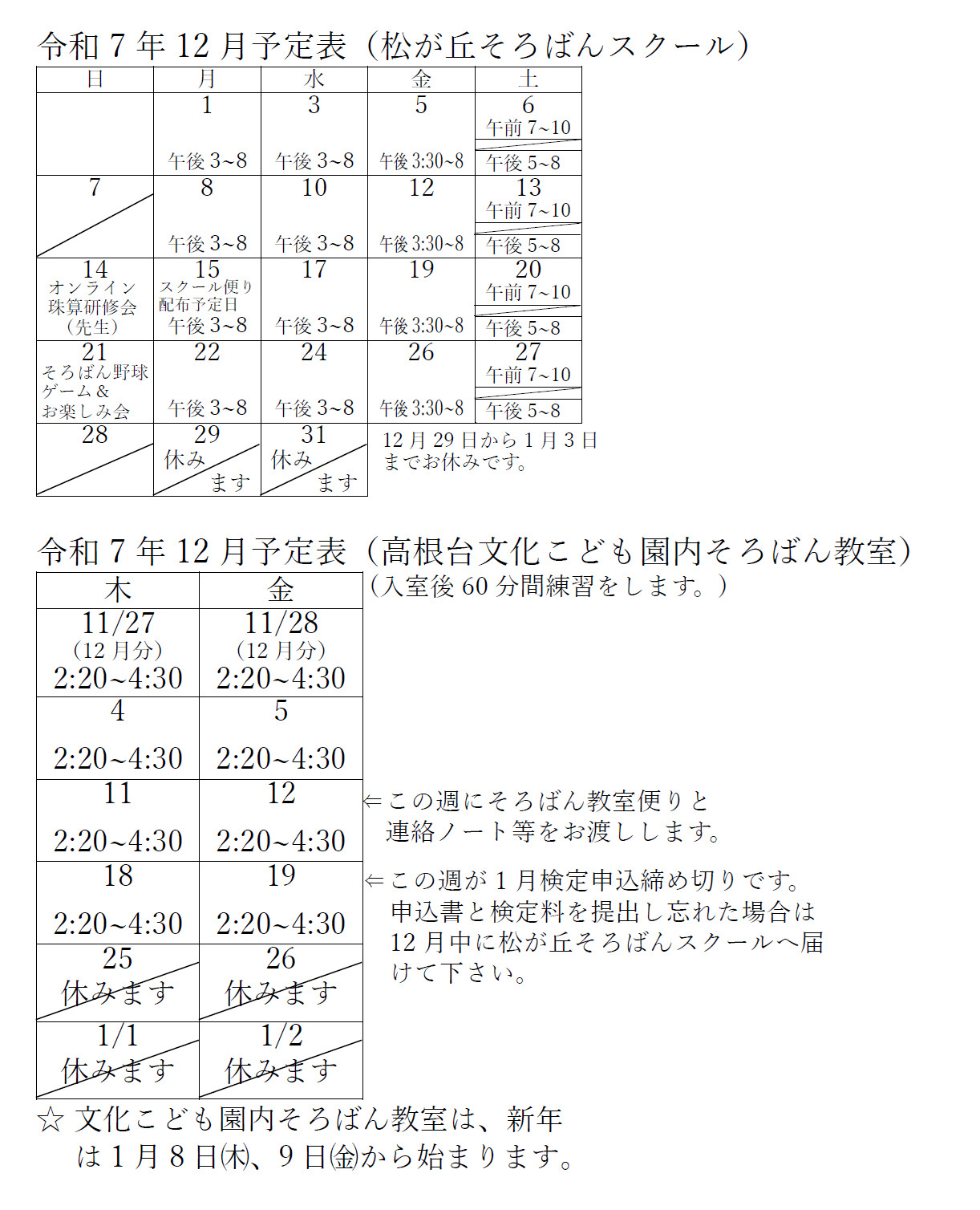 今月の予定表 2025年12月の予定表 保護者のみなさま、お間違えの無いようにご協力をよろしくお願いいたします。 2025年 2024年 2023年 2022年 2021年 2020年 2019年 2018年 2017年