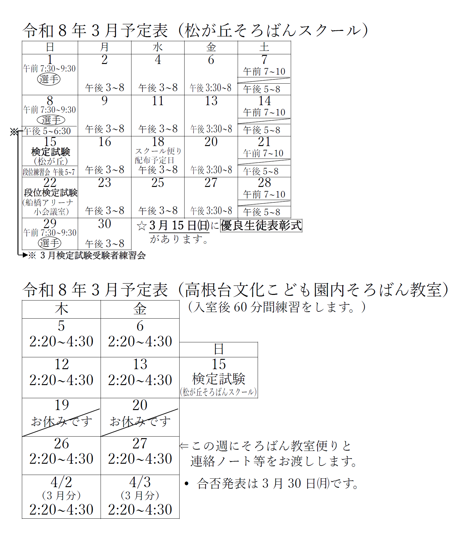 今月の予定表 2026年3月の予定表 保護者のみなさま、お間違えの無いようにご協力をよろしくお願いいたします。 2026年 2025年 2024年 2023年 2022年 2021年 2020年 2019年 2018年 2017年