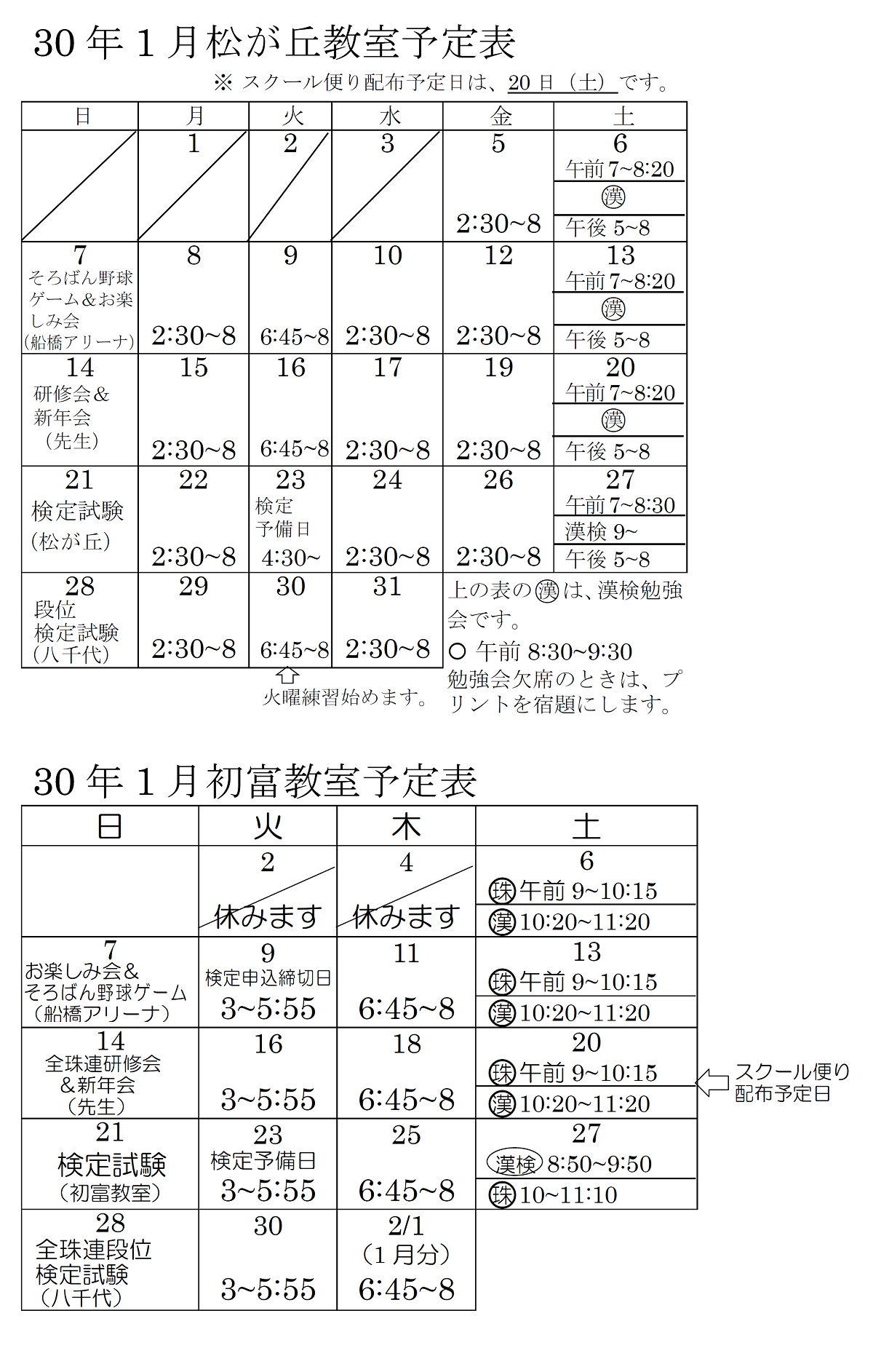 今月の予定表 平成30年1月の予定表 保護者のみなさま、お間違えの無いようにご協力をよろしくお願いいたします。 2025年 2024年 2023年 2022年 2021年 2020年 2019年 2018年 2017年