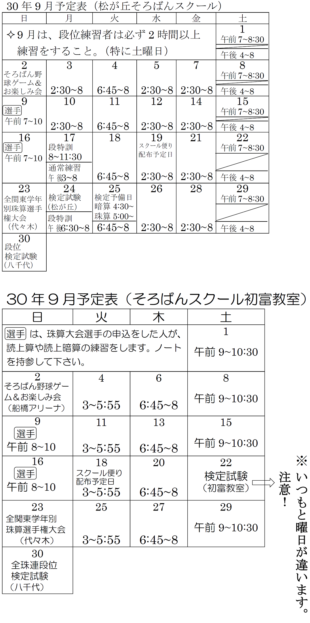 今月の予定表 平成30年9月の予定表 保護者のみなさま、お間違えの無いようにご協力をよろしくお願いいたします。 2025年 2024年 2023年 2022年 2021年 2020年 2019年 2018年 2017年