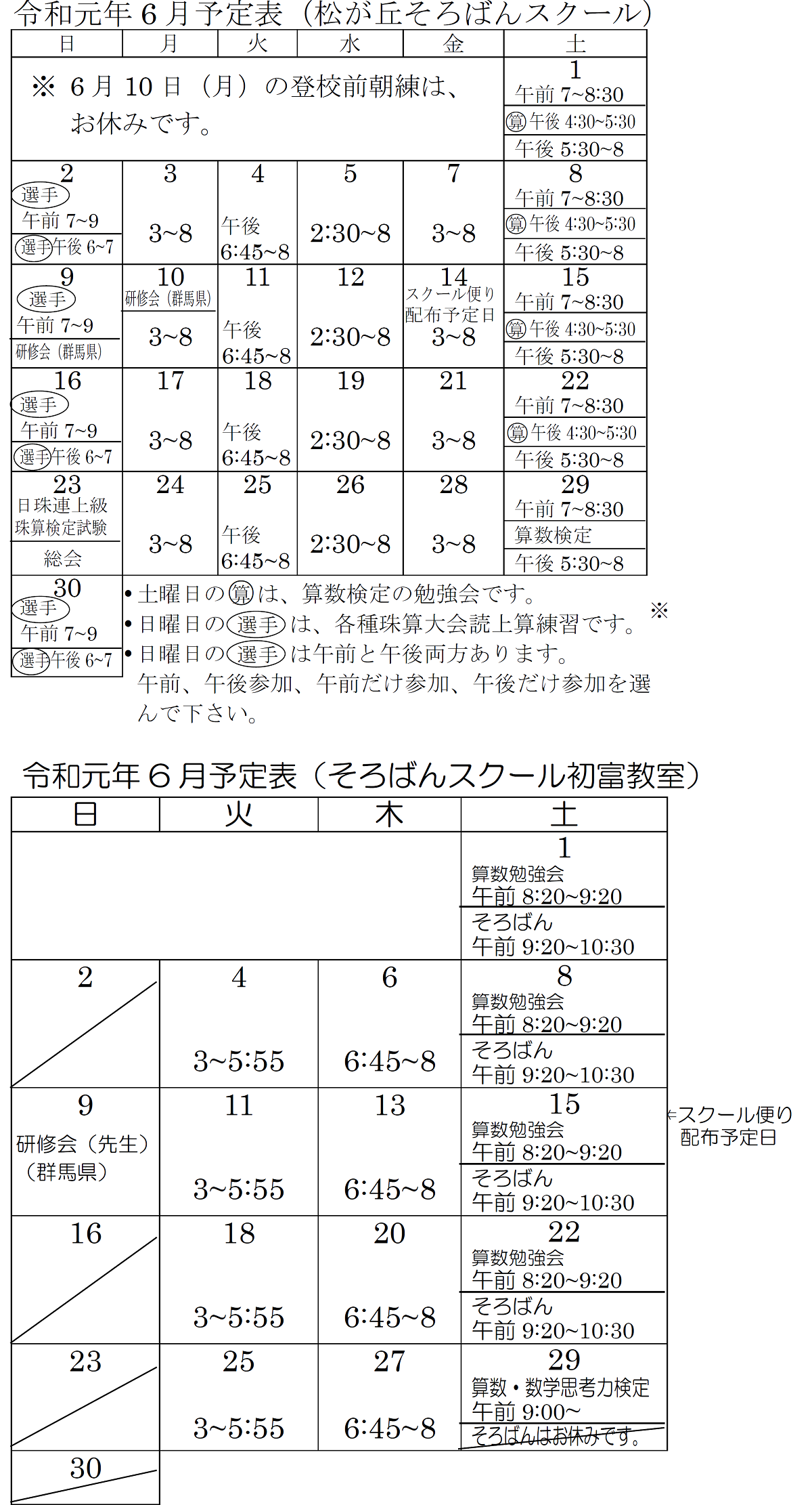 今月の予定表 2019年6月の予定表 保護者のみなさま、お間違えの無いようにご協力をよろしくお願いいたします。 2025年 2024年 2023年 2022年 2021年 2020年 2019年 2018年 2017年