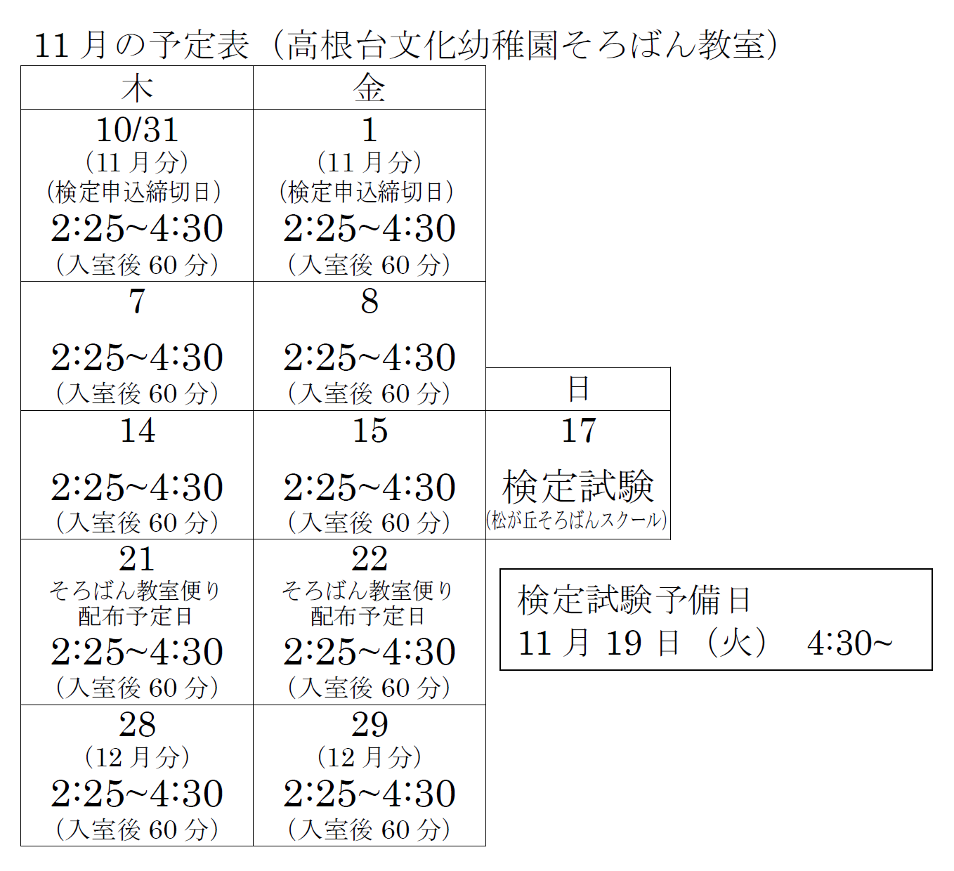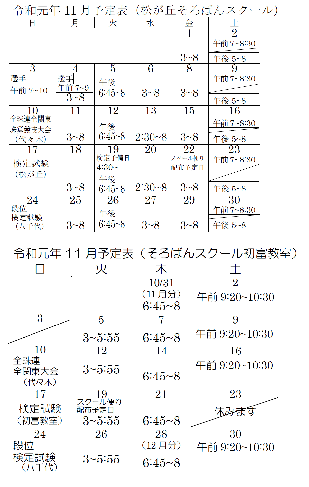 今月の予定表 2019年11月の予定表 保護者のみなさま、お間違えの無いようにご協力をよろしくお願いいたします。 2025年 2024年 2023年 2022年 2021年 2020年 2019年 2018年 2017年