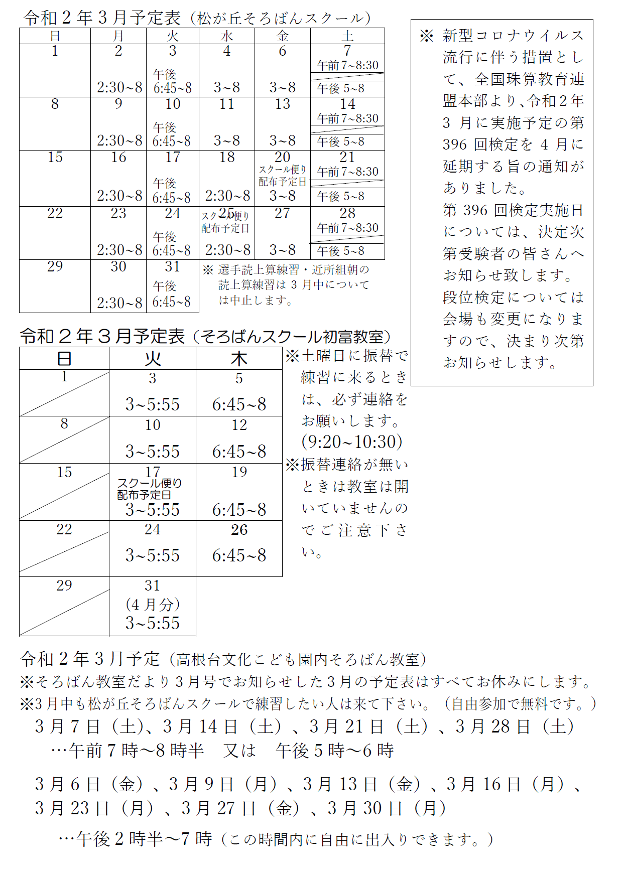 今月の予定表 2020年3月の予定表 保護者のみなさま、お間違えの無いようにご協力をよろしくお願いいたします。 2025年 2024年 2023年 2022年 2021年 2020年 2019年 2018年 2017年