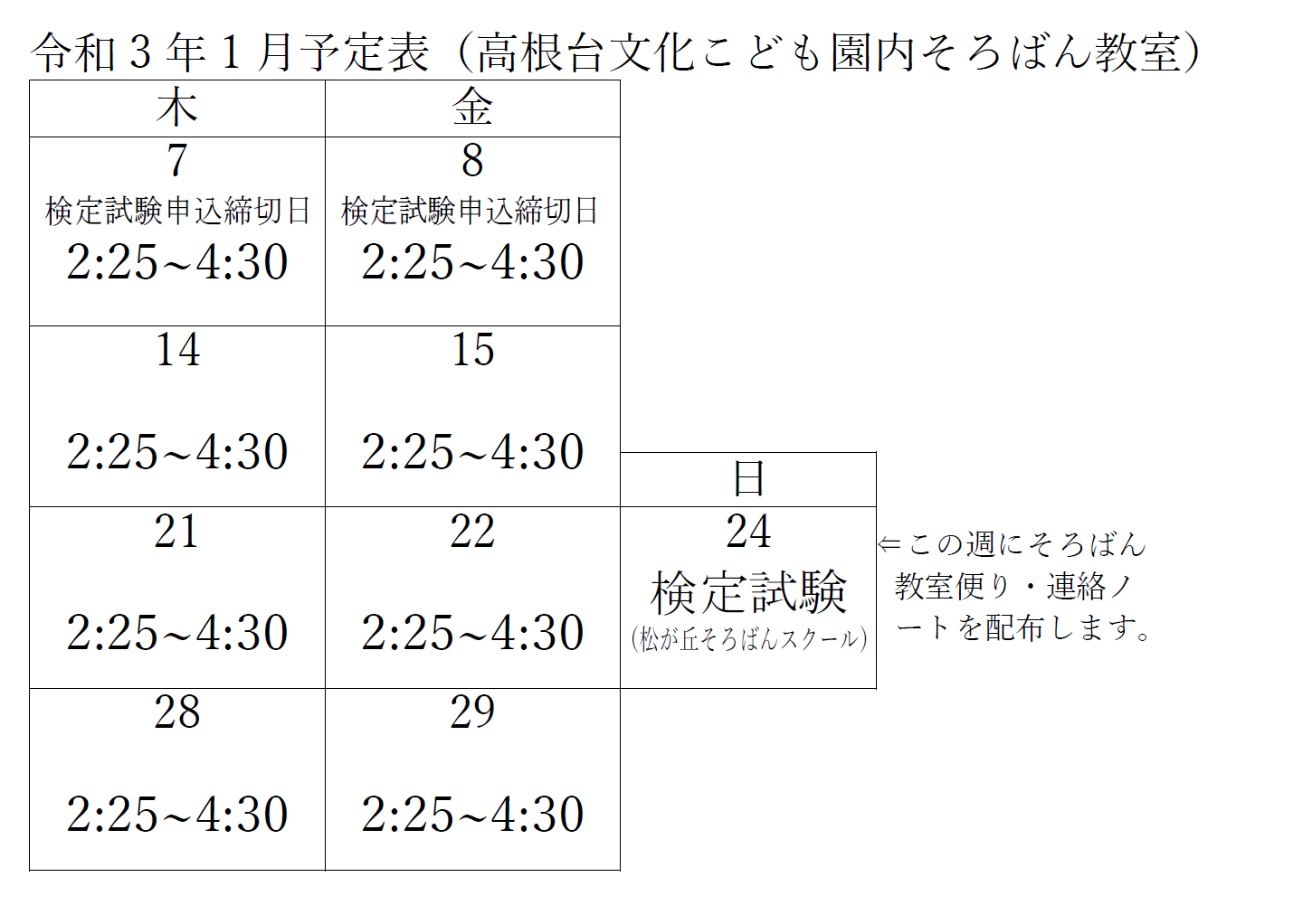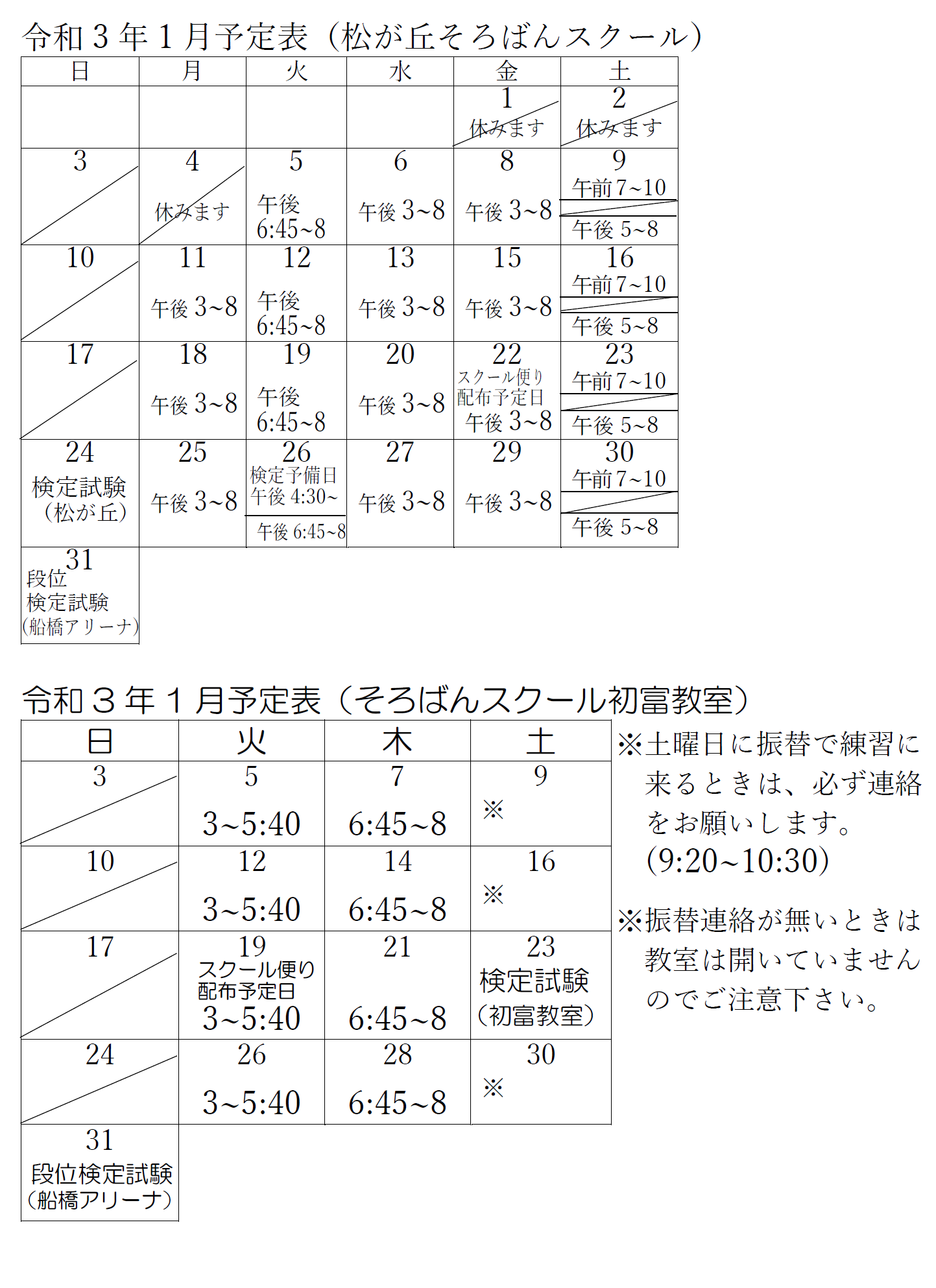 今月の予定表 2021年1月の予定表 保護者のみなさま、お間違えの無いようにご協力をよろしくお願いいたします。 2025年 2024年 2023年 2022年 2021年 2020年 2019年 2018年 2017年