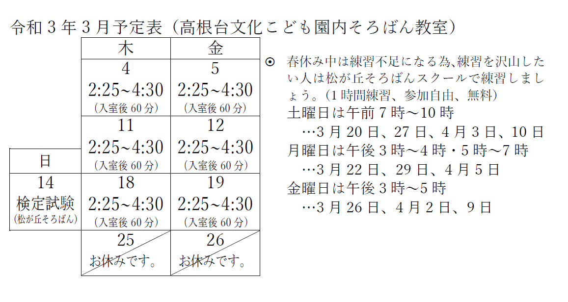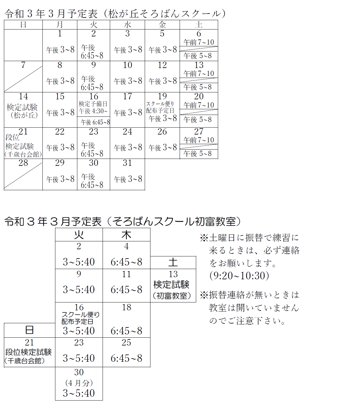 今月の予定表 2021年3月の予定表 保護者のみなさま、お間違えの無いようにご協力をよろしくお願いいたします。 2025年 2024年 2023年 2022年 2021年 2020年 2019年 2018年 2017年