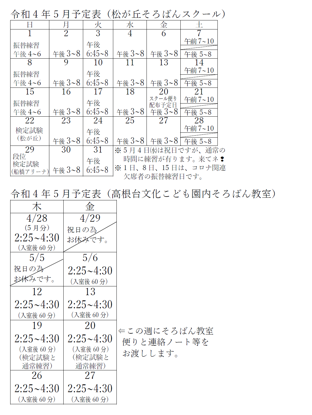 今月の予定表 2022年5月の予定表 保護者のみなさま、お間違えの無いようにご協力をよろしくお願いいたします。 2025年 2024年 2023年 2022年 2021年 2020年 2019年 2018年 2017年