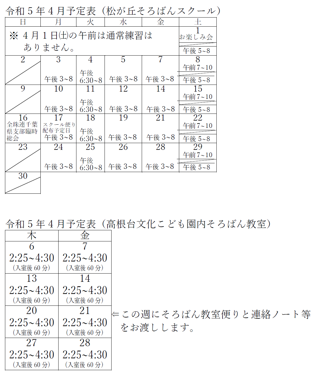 今月の予定表 2023年4月の予定表 保護者のみなさま、お間違えの無いようにご協力をよろしくお願いいたします。 2025年 2024年 2023年 2022年 2021年 2020年 2019年 2018年 2017年