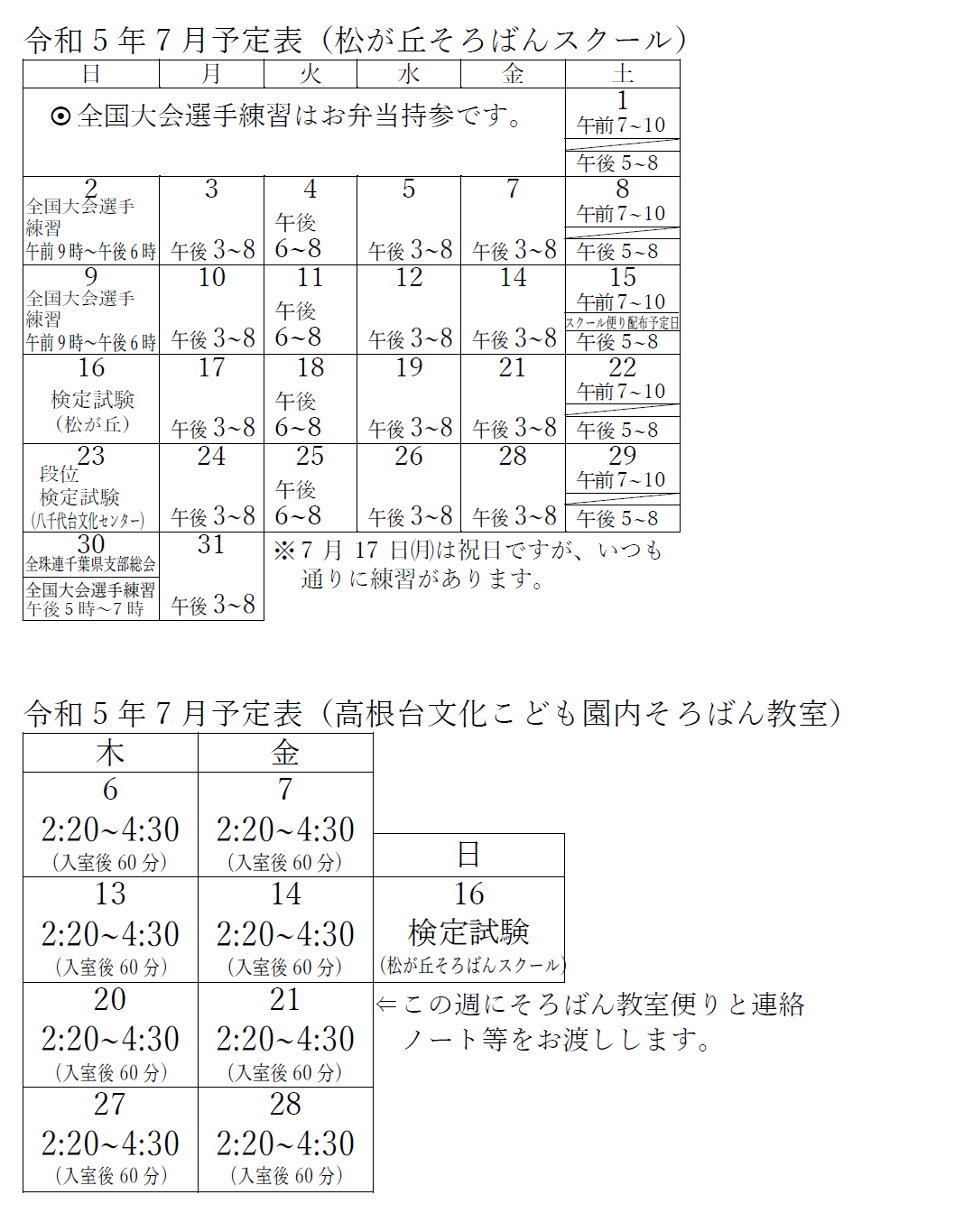 今月の予定表 2023年7月の予定表 保護者のみなさま、お間違えの無いようにご協力をよろしくお願いいたします。 2025年 2024年 2023年 2022年 2021年 2020年 2019年 2018年 2017年