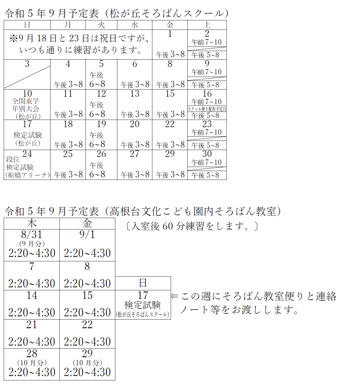 今月の予定表 2023年9月の予定表 保護者のみなさま、お間違えの無いようにご協力をよろしくお願いいたします。 2025年 2024年 2023年 2022年 2021年 2020年 2019年 2018年 2017年