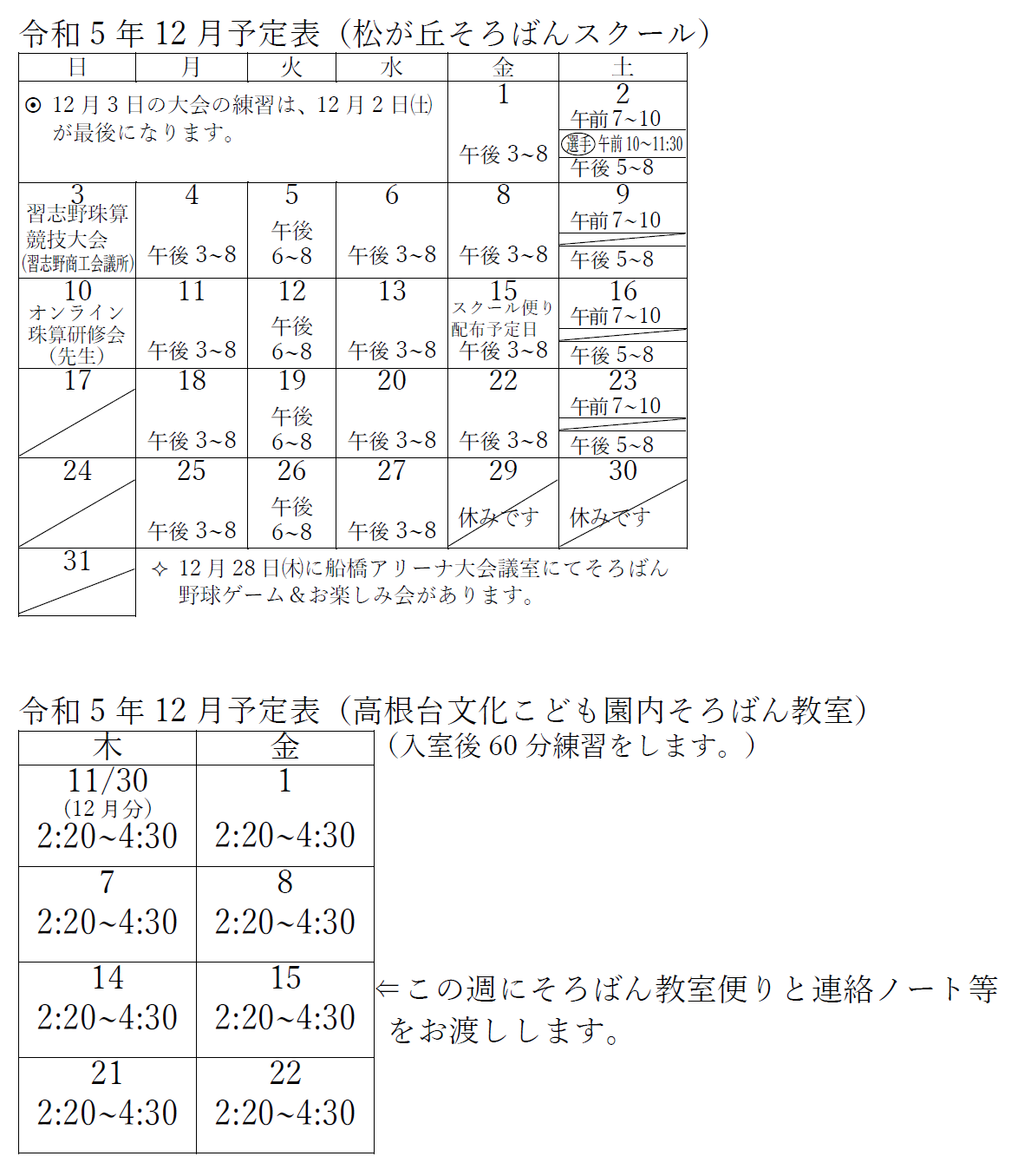 今月の予定表 2023年12月の予定表 保護者のみなさま、お間違えの無いようにご協力をよろしくお願いいたします。 2025年 2024年 2023年 2022年 2021年 2020年 2019年 2018年 2017年