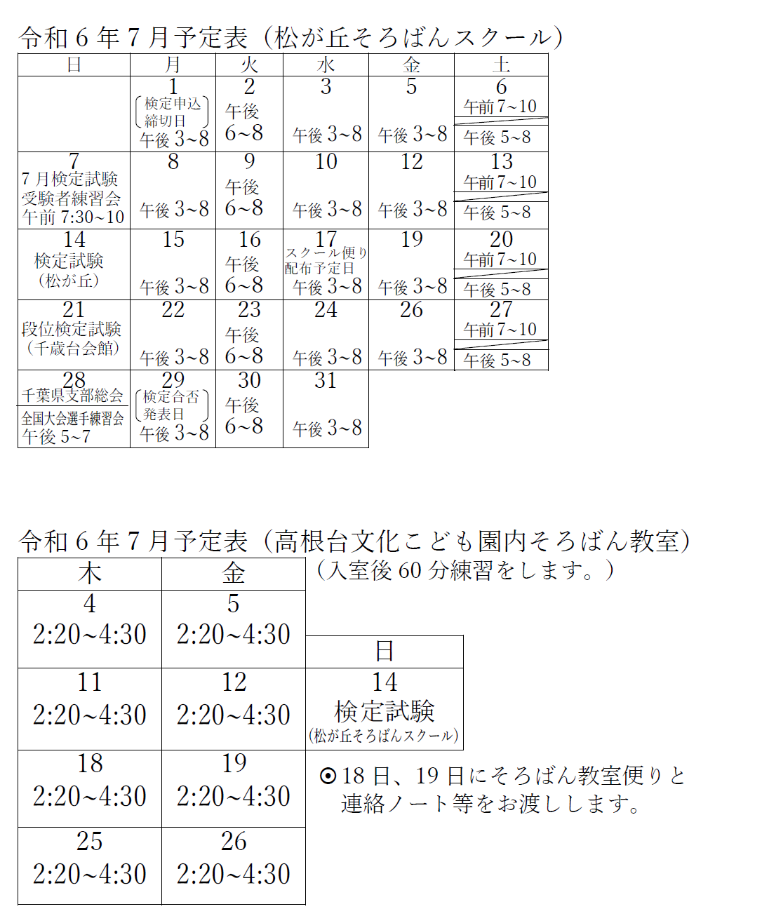 今月の予定表 2024年7月の予定表 保護者のみなさま、お間違えの無いようにご協力をよろしくお願いいたします。 2025年 2024年 2023年 2022年 2021年 2020年 2019年 2018年 2017年