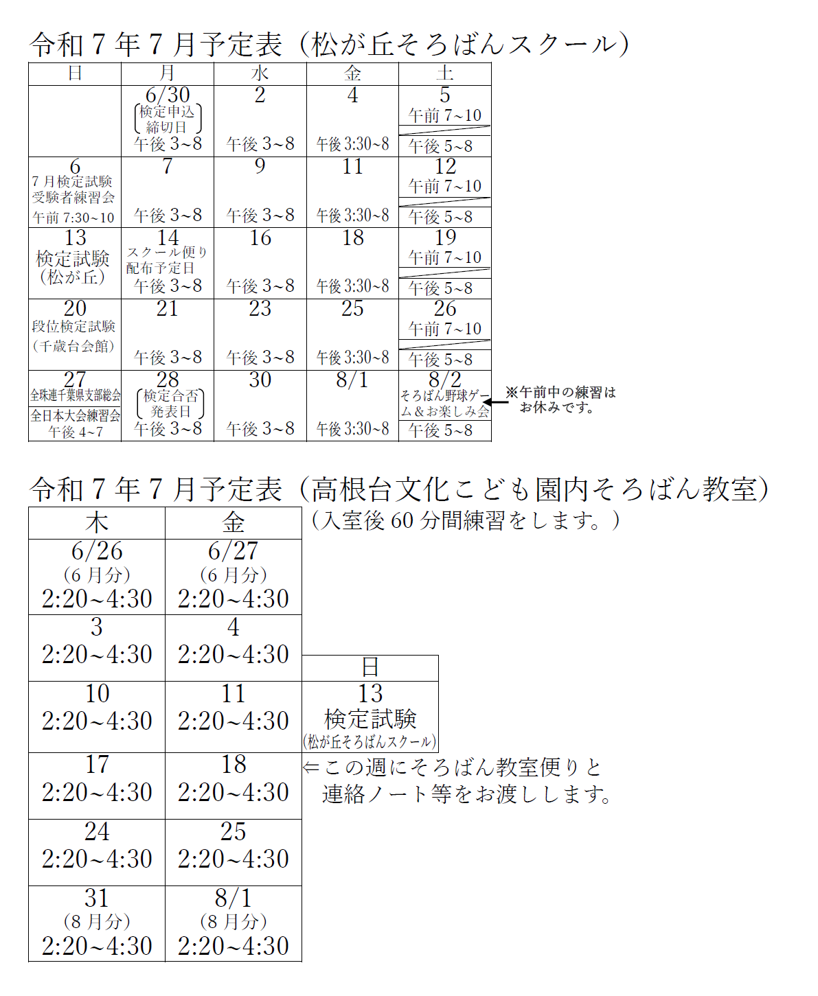 今月の予定表 2025年7月の予定表 保護者のみなさま、お間違えの無いようにご協力をよろしくお願いいたします。 2025年 2024年 2023年 2022年 2021年 2020年 2019年 2018年 2017年
