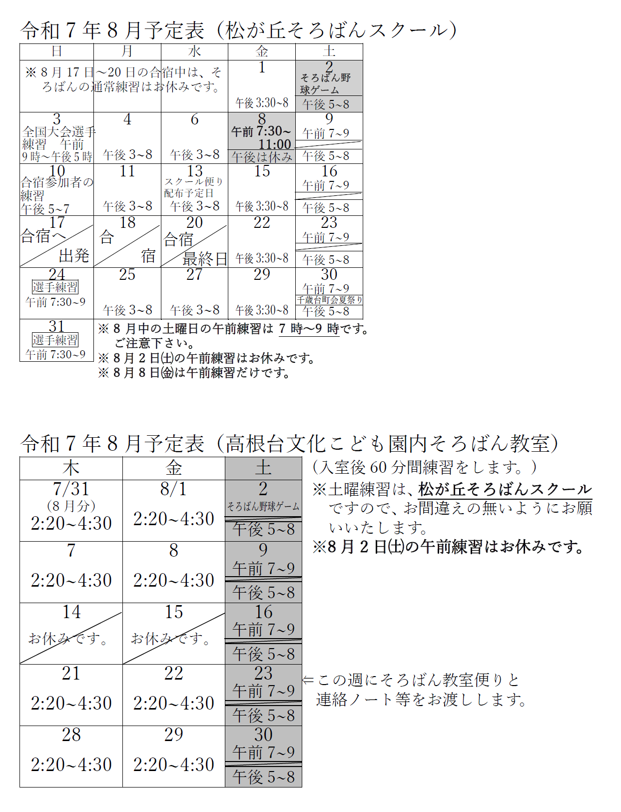 今月の予定表 2025年8月の予定表 保護者のみなさま、お間違えの無いようにご協力をよろしくお願いいたします。 2025年 2024年 2023年 2022年 2021年 2020年 2019年 2018年 2017年
